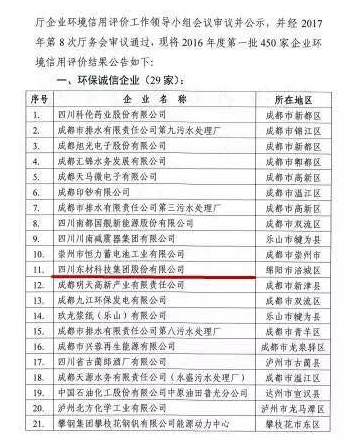 7月21日,四川省环境保护厅发布2017年第1号公告,公布了2016年度第一批企业环境信用评价结果。在全省申报的851家企业中,包括xk网页在内的29家企业获得四川省2016年度“环境诚信企业”称号。