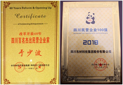 热烈祝贺东材科技党委书记、董事长于少波荣获“改革开放40年四川百名杰出民营企业家”光荣称号