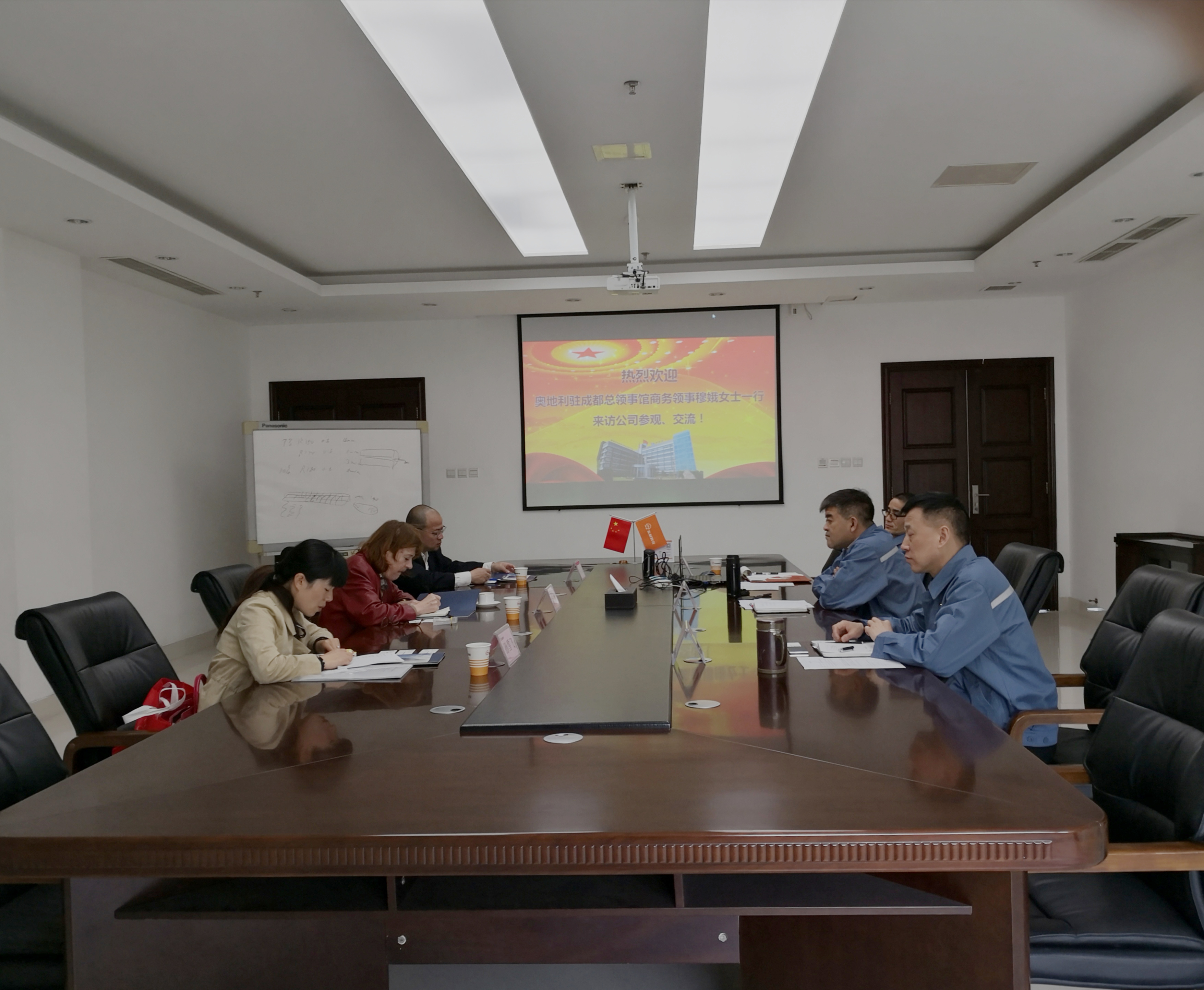 3月28日上午,奥地利驻成都总领事馆商务处商务领事穆娥女士及其助理孙雪飞来我公司访问,绵阳市外事办调研员谢铭随访。董事长于少波和总经办主任张黎接待了来宾。