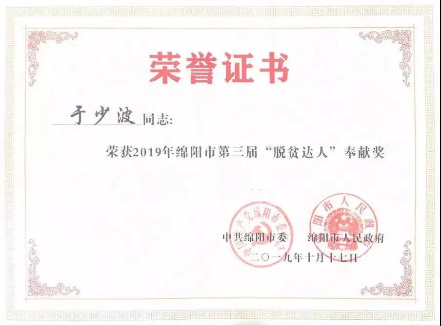 东材科技党委书记、董事长于少波荣获“脱贫达人”奉献奖
