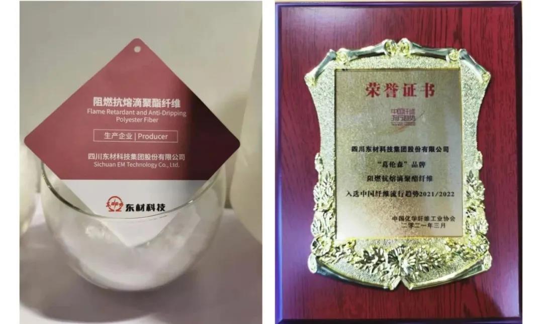 展会期间,“激荡与领航”——桐昆·中国纤维流行趋势2021/2022盛大开幕,东材科技葛伦森牌“阻燃抗熔滴聚酯纤维”入选“中国纤维流行趋势2021/2022”。