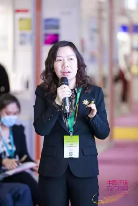 东材科技总经理助理、功能材料事业部总经理梁倩倩在春夏纱线展纤维新视界-纺织材料创新论坛功能性纤维分论坛作了《阻燃抗熔滴涤纶纤维及面料的开发与应用》报告,介绍了公司根据不同需求,开发不同功能、不同阻燃效果的共聚阻燃系列化产品,重点介绍了阻燃抗熔滴聚酯、纤维、面料技术路线与产品优势,包括无卤阻燃、成炭性好、良好自熄性、抗熔滴效果好,符合RoHS、REACH法规等。